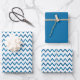 Modern Blue Zigzag Striped Gift Christmas Wrapping Paper Sheet