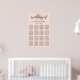 Modern and chic blush pink wedding seating chart poster features a stylish black typographic design with bold calligraphy script accents and elegant custom text that can be personalised with a monogram of the bride and groom names, names of guests organised by their assigned table numbers.