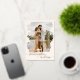 Modern minimalist rose gold and pastel blush pink script wedding with 2 photo grid collage with abstract watercolor brushstroke photo mask overlay with real rose gold foil.