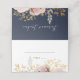 This modern blush floral | navy folded place card is perfect for your elegant boho luxury rose gold, sage green, blush pink wedding. Design features a gold foil frame or bouquet with rustic red peach spring peony, a classic whimsical watercolor succulent flower, greenery including fern and eucalyptus, with appearances of a vintage dusty rose and ivory butterfly. Other flowers include hydrangea, dahlia, and rose. The design is ideal for a classy, creative botanical fall, spring, summer, winter, retro bohemian wedding. Please feel free to contact us with any questions regarding the product's design; cheers!