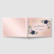 Elegant navy blue and blush floral wedding guest book with a modern script font title and a gold geo frame adorned with blue and blush roses. Matching items available.