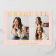 A modern and elegant blush pink gold foil graduation party photo invitation. This unique grad party invite features a trendy script font and space to add 3 photos. THE SAMPLE PHOTO IS NOT INCLUDED. REPLACE WITH YOUR OWN PHOTO BEFORE ORDERING.