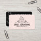 A fun and friendly cupcake bakery business card with line drawing of a cupcake. Front of the bakery business card is blush pink and the back of the business card is black. Personalise it for your bakery business. Designed for you by Blackberry Boulevard.