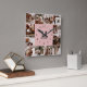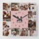 Modern Blush Pink Family 12 Photo Collage Monogram Square Wall Clock