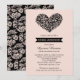 Simple and cute wedding bridal luncheon shower invites feature a black floral heart, monogram banner, and a pattern of flowers on the back. Pale blush pink background colour.