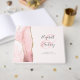 This elegant wedding guest book features a blush pink watercolor agate design trimmed with faux gold glitter. Easily customise the charcoal grey text on a pale blush background, with the names of the bride and groom in whimsical charcoal grey handwriting calligraphy over a large pink ampersand. Add additional text of your choice to the front and spine.