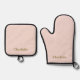 Modern blush pink gold custom name text monogram oven mitt & pot holder set