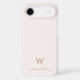 A modern, elegant monogram design with gold handwritten minimalist script typography and sans serif block typography on an elegant pale pastel blush pink background. The monogram and name can be easily personalized.