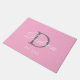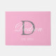 Designed with customisable light pink background and light grey monogram initial on the centre. Personalised with last name in classy white calligraphy script lettering and year established in white numbers on lower front centre. Makes a great housewarming gift.