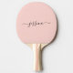 Modern ping pong paddle with a girly, blush pink background and a hand lettered script. Personalise with your name.