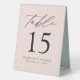 Trendy, minimalist wedding table number tent signs featuring black modern lettering with "Table" in modern calligraphy script. The design features a blush background or a colour of your choice. The design repeats on the back. To order the table number tent signs: personalise with your names, wedding date, and table number. Add each number to your cart individually and check out when you're finished.