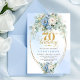 Modern Bohemian Dusty Blue Peonies 70th Birthday Invitation