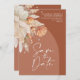 Modern bohemian terracotta pampas grass stylish wedding save the date invitation.