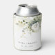 Modern Boho Abstract Green White Floral Wedding Can Cooler