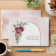 The elegant combination of boho arch watercolor blush with dark maroon roses, eucalyptus greenery, and gold sparkles creates a stunning theme for wedding envelopes. This sophisticated design blends natural elements with a touch of glamour, perfect for a stylish and romantic wedding invitation suite. The soft blush tones, deep maroon accents, and shimmering gold details come together to evoke a sense of elegance and charm, setting the tone for a beautiful and memorable celebration.