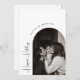 Celebrate the joy of the season with this modern boho arch happiest holidays vertical photo holiday card. The unique and chic editable script creates a touch of charm and individuality. Its simple, elegant black-and-white design, featuring a classic bohemian arch frame, evokes a whimsical winter ambiance. The minimal and delicate festive font adds creativity and charm. With a clean and basic neutral layout, this greeting captures the essence of December in style and grace.