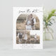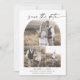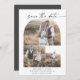 This modern boho arch photo collage save the date card is perfect for a simple wedding. The bohemian black and white design features unique industrial lettering typography with minimalist vintage style. Personalise the front of the card with 3 photos, your names, date and wedding location.