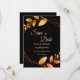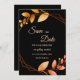 Announce your upcoming wedding in style with our Elegant Autumn Botanical Gold Frame Save the Date card. This design features a striking black background, accentuated by warm apricot-coloured fonts that create a vivid and inviting look. Delicate leaves in shades of soft muted earth tones and earthy autumnal copper shades add a cosy and romantic autumnal feel, while the geometric frame, blending burnt orange and terracotta hues, lends a rustic yet elegant touch. Perfect for autumn, fall, or winter celebrations, this save the date card captures the botanical charm and modern minimalism of a love-filled union. Ideal for couples seeking a romantic and sophisticated way to share their special day, this card radiates warmth and elegance, ensuring your guests mark their calendars for a wedding to remember.