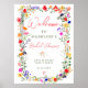 Modern boho bright wild flowers bridal welcome bohemian bridal shower welcome sign. Featuring pink, red, green, and purple hues botanical flowers inspired by wildflowers and watercolor rustic gardens with subtle greenery and modern boho script typography.