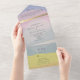 Celebrate your love with this modern boho colourful all-in-one wedding invitation featuring a romantic watercolor mountain design, customisable details, and a full photo back. This eco-friendly, elegant invitation is perfect for couples who want a seamless and stylish way to invite guests.
