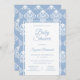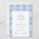 Modern bohemian dusty blue and white baroque pattern. Beautiful ornamental baby shower invitation. Easily edit the template to suit your baby shower event. Modern Boho Dusty Blue White Baby Shower Invitation.