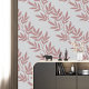 Modern Boho Elegant Mauve Leaf Pattern Light Grey Wallpaper