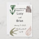 Modern minimalist engagement party invitation with abstract palm leaf design.