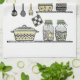 A boho inspired kitchen towel with a hand drawn kitchen shelf illustration perfect for modern farmhouse living. Designed in a pastel yellow, grey, and green colour palette, this unique home decor accessory will be a stunning accent piece for kitchen, living and dining room and make a beautiful gift for her who loves cooking.