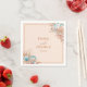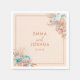 A modern and elegant boho wedding napkin, with blue and terracotta watercolor florals at the corners. Customise with your names and wedding date.