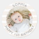 Modern Boho Happy 1st Birthday Photo Classic Round Sticker