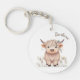 Personalised first name rustic cute modern boho highland cow on white background keychain, perfect as a thoughtful gift.