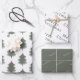 Celebrate the holiday season with these modern boho merry Christmas | trees and pine wrapping paper sheets. Their mix of simple black-and-white font and unique Christmas patterns, including chic Christmas trees and green and gold pine branches, creates a touch of charm and individuality. The design embodies a classic and whimsical feel, perfect for the winter season. Capture the essence of December with these delightful and beautifully crafted wrapping papers.