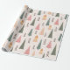 Modern and minimalist cute boho Christmas tree pattern wrapping paper. Simple style in blush pink, green, and orange.