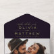 Modern stylish dark wedding card Purple with gold dust on with a gold ink pour effect (the gold is a digital effect, not real foil!) and modern calligraphy. Classy and elegant, simple and modern invitation. Gold ink pour effect (the gold is a digital effect, not real foil!) and modern calligraphy.