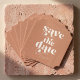 Modern Stylish Typography Wedding Save the Date Coasters in modern neutral boho shade of terracotta rust brown. Perfect for letting your future guests know of your happy event or engagement! Please contact us at cedarandstring@gmail.com if you need assistance with the design or matching products.