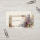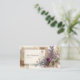 Showcase your unique creative brand with this modern boho-chic business card. This highly artistic design features a sophisticated abstract collage of natural and geometric elements. On the right, a delicate watercolor bouquet blooms with purple thistles, feathery lavender fronds, and dusty blue-green pine needles, all set against sage green leaves and rustic dried botanicals. On the left, a modern geometric pattern of overlapping squares and rectangles in earthy tones of brown, beige, and grey-blue adds texture with linen weave, cross-hatch, and speckled details. The entire composition is set on a minimalist, light cream paper texture background, with a clean, open space for your details. This earthy and sophisticated design is a perfect choice for interior designers, textile artists, or architects who work with texture and natural palettes. It is also ideally suited for artisan crafters, herbalists, boutique owners, or brand strategists with a natural, rustic, or modern bohemian aesthetic. This elegant design is also perfectly suited for use as a creative thank you card, loyalty card, boutique price tag, or a mini-invitation for any special event.