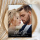 Modern Chic Boho Calligraphy Script Wedding 2 Photo Thank You Card. Stylish wedding thank you template featuring a full vertical photo on the front with the text "Thank You" in a whimsical swirly hand lettering typography script swash tail font in white overlay on the picture and a reverse side one (1) photo and pre-made thank you message. 2-sided card with 2 photo. Easily to personalise your name and thank you message. If you prefer to handwrite your note, just delete the sample text to make more space. If You need help or matching item, please contact to me!