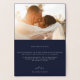 Modern boho script photo, wedding thank you foil card. Features, single photo space, foil graphic "Thank You" and doodle heart accent, template text lines in white for your names and personalised message on navy blue colour background.