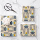 Modern Boho Shapes Lines Arch Pattern in Blue Wrapping Paper Sheets
