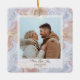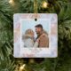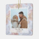 Celebrate the season with understated elegance and heartfelt warmth. This square holiday ornament features a modern boho aesthetic in soft neutral tones, perfect for couples, newlyweds, or young families sharing their joy with loved ones. A gently marbled abstract background with delicate snowflake accents frames your personal photo, creating a cosy, winter-inspired moment.
