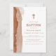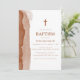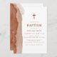 Celebrate the baptism with this terracotta boho abstract desert themed, baptism invitation with a modern minimalist simple watercolor terracotta ombre abstract with simple cross.