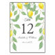 Modern Boho Watercolor Lemon Summer Wedding Table Number