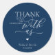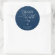 Modern Wedding minimalist Thank You Gifts Classic favour Round Sticker, in romantic script, cute little red heart, with huge love, followed by bride and groom signature and wedding date, in classy navy blue theme.
