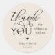 Modern Wedding minimalist Thank You Gifts Classic favour Round Sticker, in romantic script, little cute heart, with bride and groom signature and wedding date, in black and cream theme.