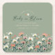 Modern Boho Wildflower Sage Baby in Bloom Shower Square Paper Coaster