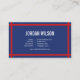 This modern business card in red and blue colours features bold borders. It's ideal for consultants, writers, interior designers, freelancers, photographers, etc or just about anyone who wants a stylish bold design that stands out and a way to let the people they meet in real life know how to find them and their work/portfolio online and on social media.