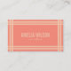 This modern business card in coral and peach colours features bold borders. It's ideal for consultants,writers,interior designers, freelancers, photographers, etc or just about anyone who wants a stylish bold design that stands out.