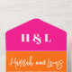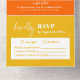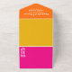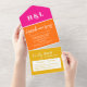 This is an bold, modern all in one wedding invitation featuring a beautiful calligraphy font and hot pink, orange, and yellow backgrounds. All colours are editable. // For matching designs, search "FALLON" in the Sincerely By Nicole Zazzle store. * If you like this design but don't see it available for something you are looking for, please reach out to me any time :)