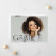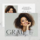 Modern and bold 2 Photo graduation announcement cards, featuring design elements of dark transparent, modern fashion style text reading "Grad" along with a minimalist typography. The graduate's photo on the front of the card highlights the entire surface with a second photo on the back. The back of the card also offers personalised text spaces for information about your graduation and future journey. Perfect for the high school, college and university grad student seniors.