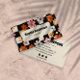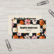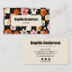 Make a memorable first impression with this stylish bold floral business card featuring a trendy black-and-white chequered background decorated with vibrant orange, pink, and cream flowers.